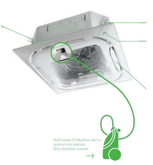 › A szűrő karbantartása kevesebb időt vesz igénybe: a por könnyen eltávolítható porszívóval, a készülék kinyitása nélkül