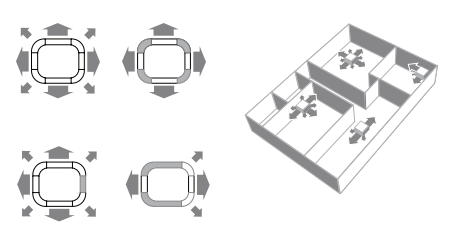 › A négy nyílás bármelyikének egyenkénti kinyitása vagy zárása a vezérlővel, hogy a készüléket bármilyen helyiségformához igazítsa